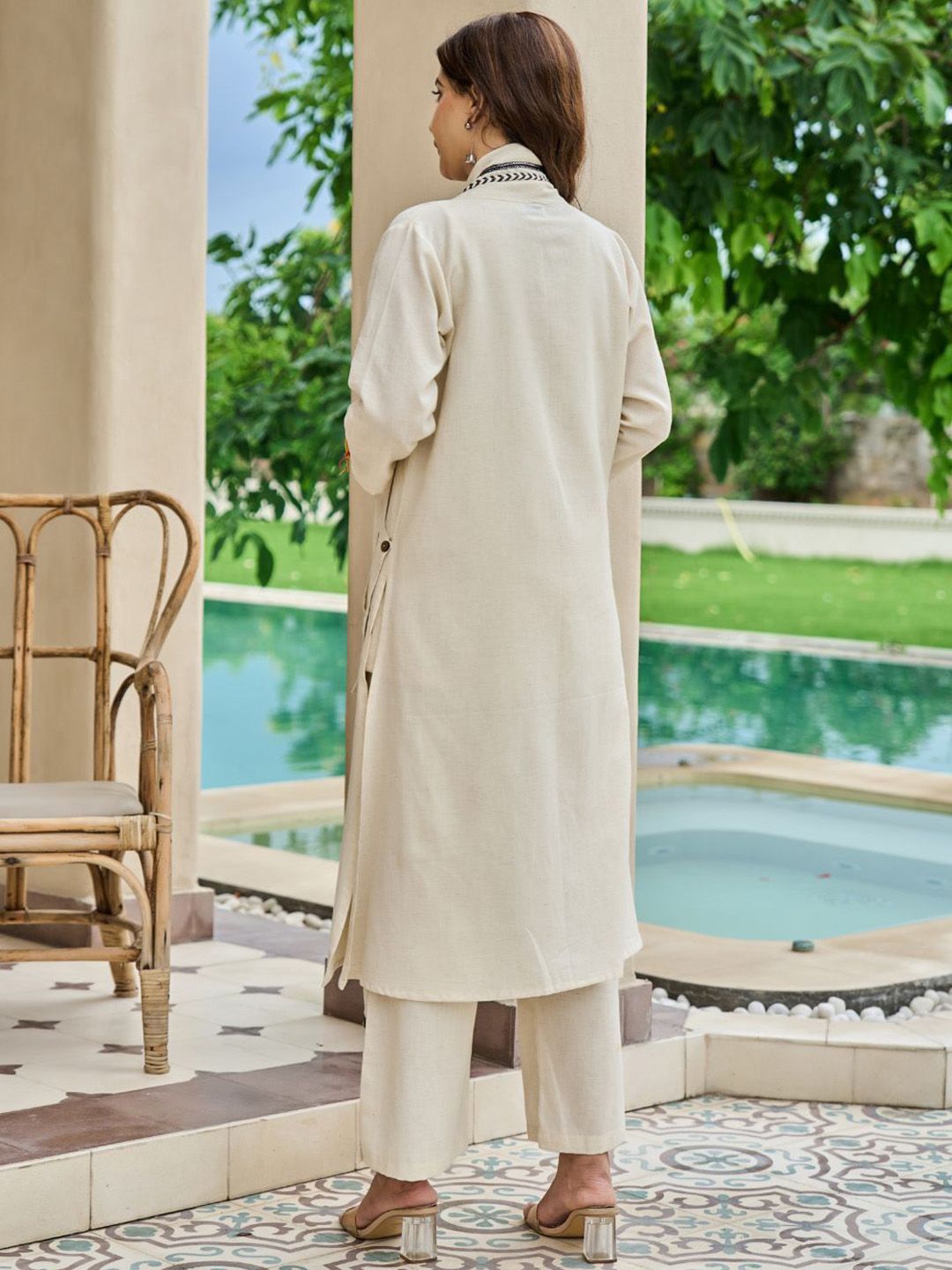 Embellished Round Neck Tunic & Trousers With Shrug Co-Ords