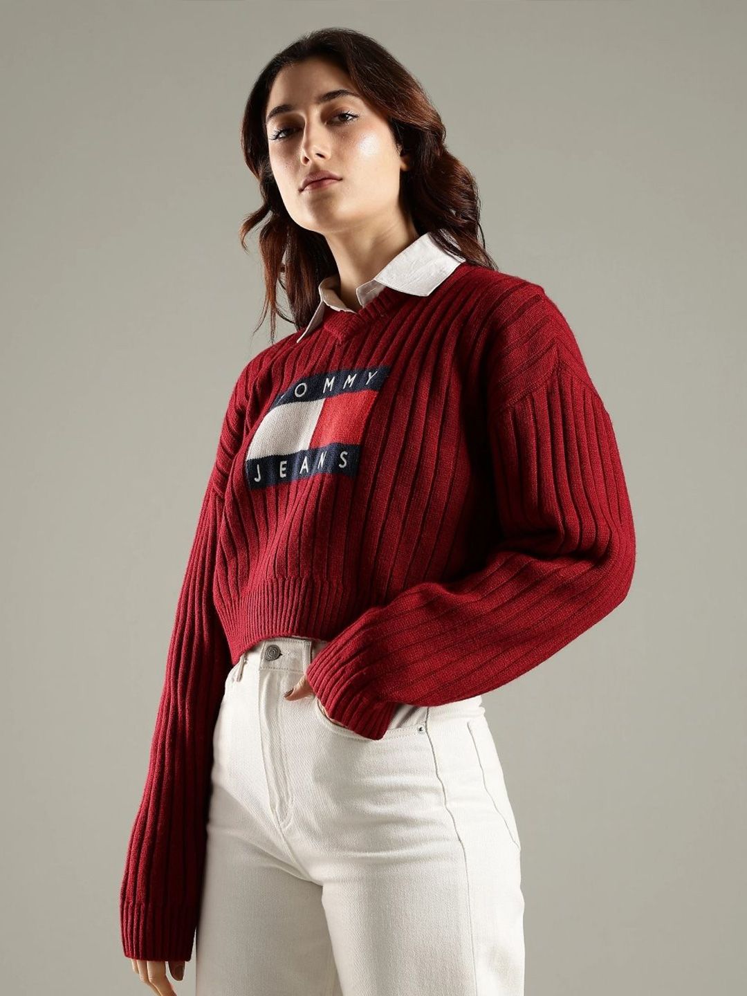 Be the first to review “Tommy Hilfiger Women Brand Logo Printed V-Neck Regular Pullover”